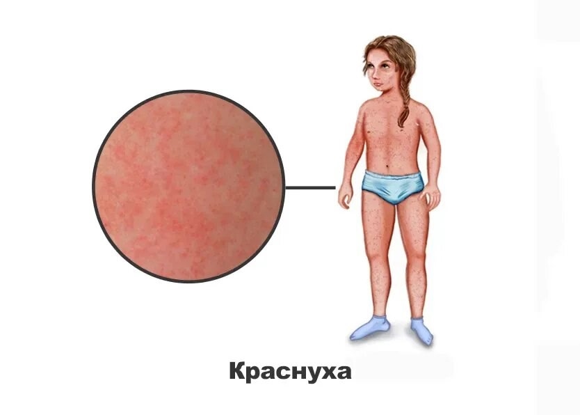 Краснуха представляет собой острую вирусную инфекцию, проявляющуюся характерными высыпаниями на фоне умеренной интоксикации. Вирус краснухи внедряется в организм через слизистую дыхательных путей, куда он попадает с вдыхаемым воздухом. Инкубационный период длится от 10 до 25 дней. Типичными для краснухи признаками является появление сыпи вначале на лице, ее быстрое распространение по всему телу и отсутствие на коже ладоней и подошв.